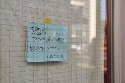 節電に関する貼紙をする店は多い。