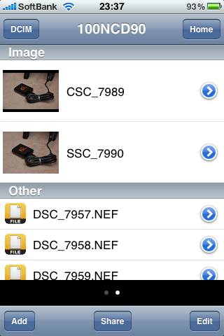 ディレクトリを辿っていくと、JPEG画像がサムネイル表示される。さすがにNEF形式は無理らしい。